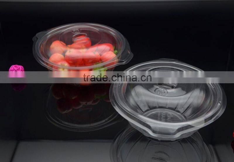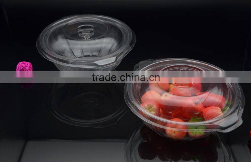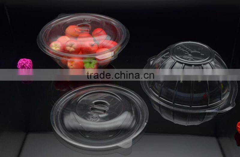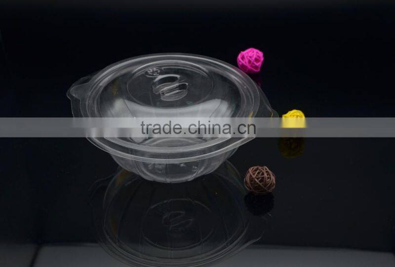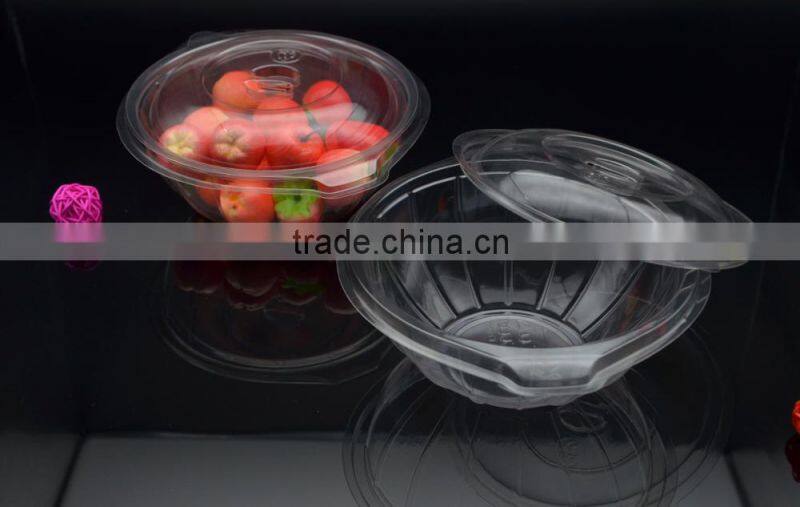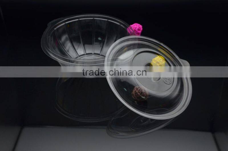 Clear plastic food and salad bowl or container with lid