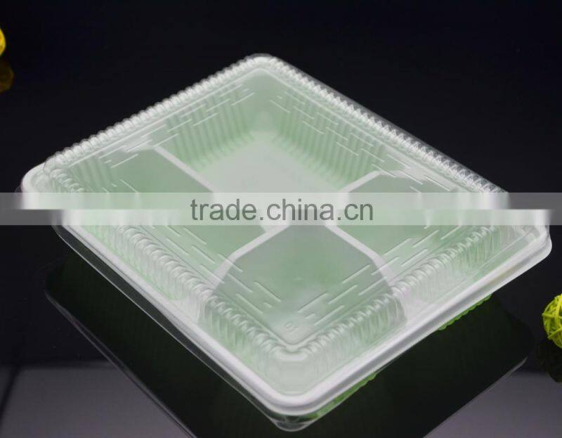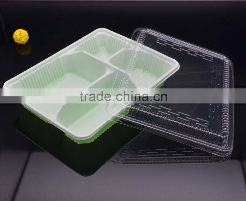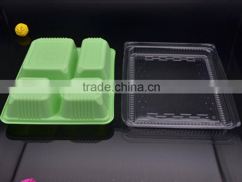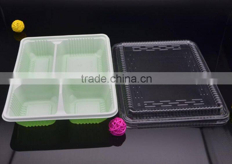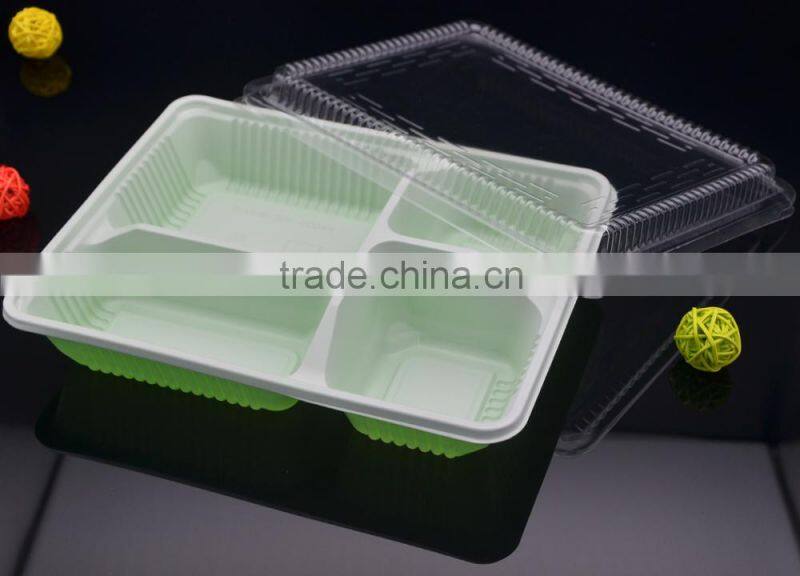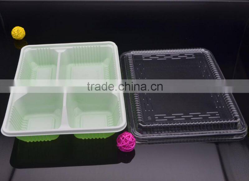 Eco friendly disposable plastic bento box, four compartments bento packing box