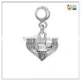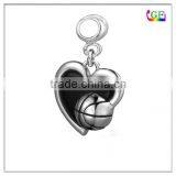 Dangle Bead Zinc Alloy Love Basketball in my Heart Drop Charm