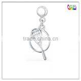 Sport Theme Silver Tennis Racquet Charm Dangle Circle Bead