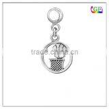 Silver Basketball & Hoop Pendant Bracelet Bangle Dangle Bead