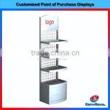 | Detail: 1. This rack with popular design and movable shelf, easy to assemble. 2. Different size, color, thickness, layers are available for you to choose. 3. This display rack can hang different products, and highly promote your products. 4. Every shelf can be adjusted freely. 5. It can be printed your brand ,company name,together with products,which is the best tool for promotion . 6. KD structure