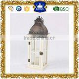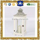 Cheap Wooden Lantern With Metal Top White Color