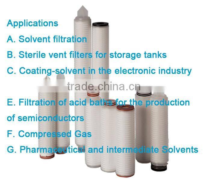 A. Hydrophobic PTFE membrane pleated cartridges with absolutely rated