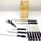 Hot Sale Platic Handle Kitchen Knives Set 14 -piece With Wooden Block KC-2011