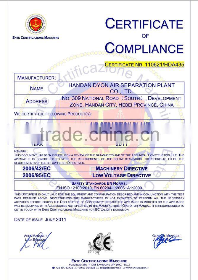 Home > Products > Small scale Air separation plant > China Handan Dyon Air Separation Plant