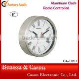 8"Aluminium Radio Controlled Clock /Home Decor Design Wall Clock