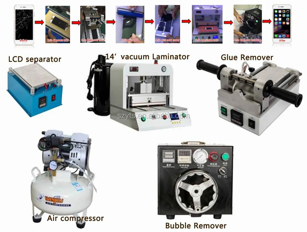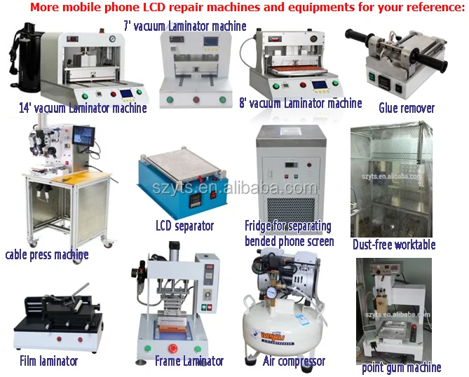 For frame laminator(if do iphone screen,you'd better buy this machine,other phone screen no need this machine ), air compressor(we suggest you can buy this machine in your country to save shipping charges)