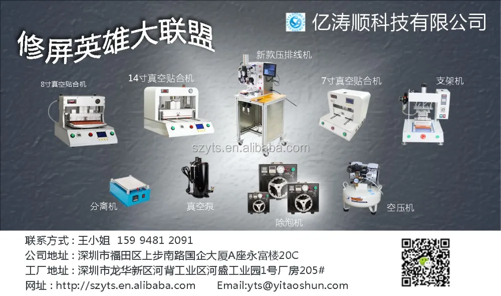 2.Apply to all cellphone touch screen manufacturing process: such as:iphone,Ipad,HTC,Sony,samsung s6 edge or s7 edge curve LCD. It works very fast and convenient operation,no rework,no broke screen,cheap price,retail and wholesale.