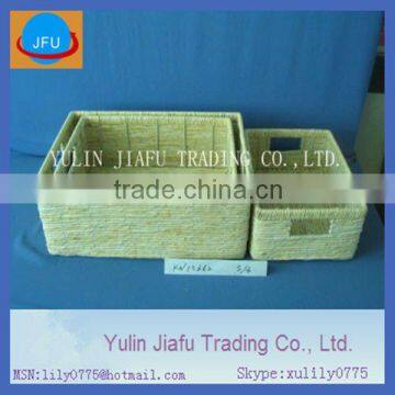 Handmade Weaving Rectangle Corn Husk Storage Baskets Sorter Basket Bin Rattique Shelf Tote