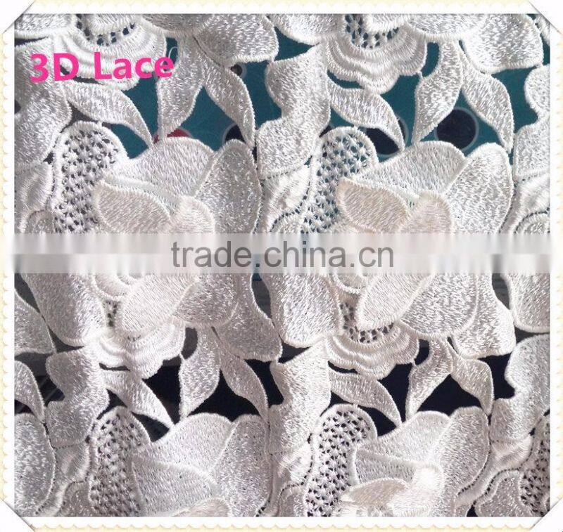 Fashion White French 3D Flower Lace Fabric, Free Sample 3D Lace, French Embroidery Bridal Lace Fabric for Wedding Dress