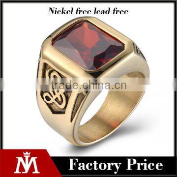 18k Gold Plated Gothic Smart Surgical Stainless Steel Gemstone Ring