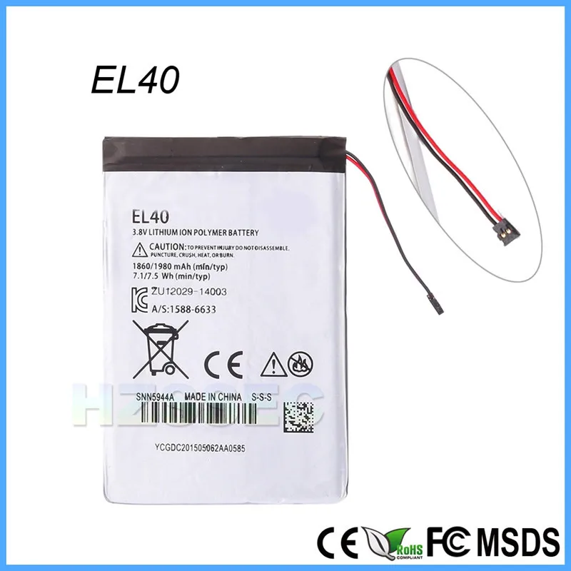 Original Replacement Lithium EL40 Mobile Battery for Motorola XT830C XT1019 3.8V 1980 MAh