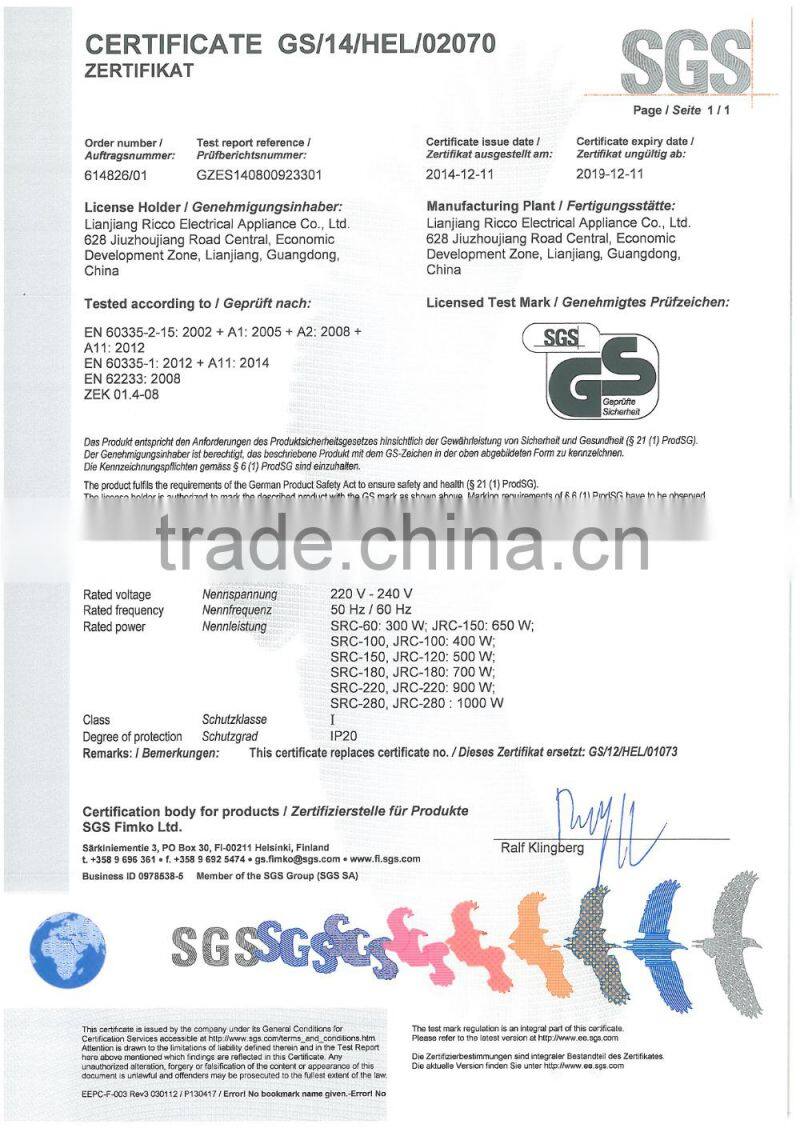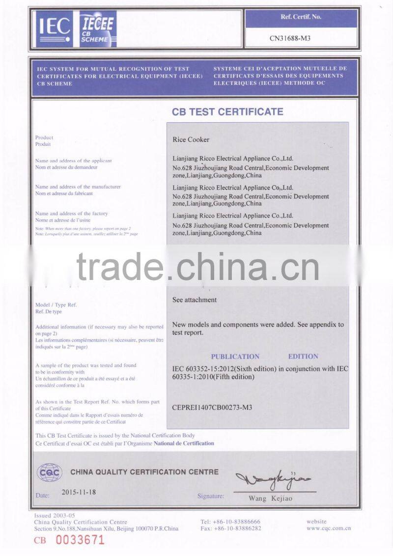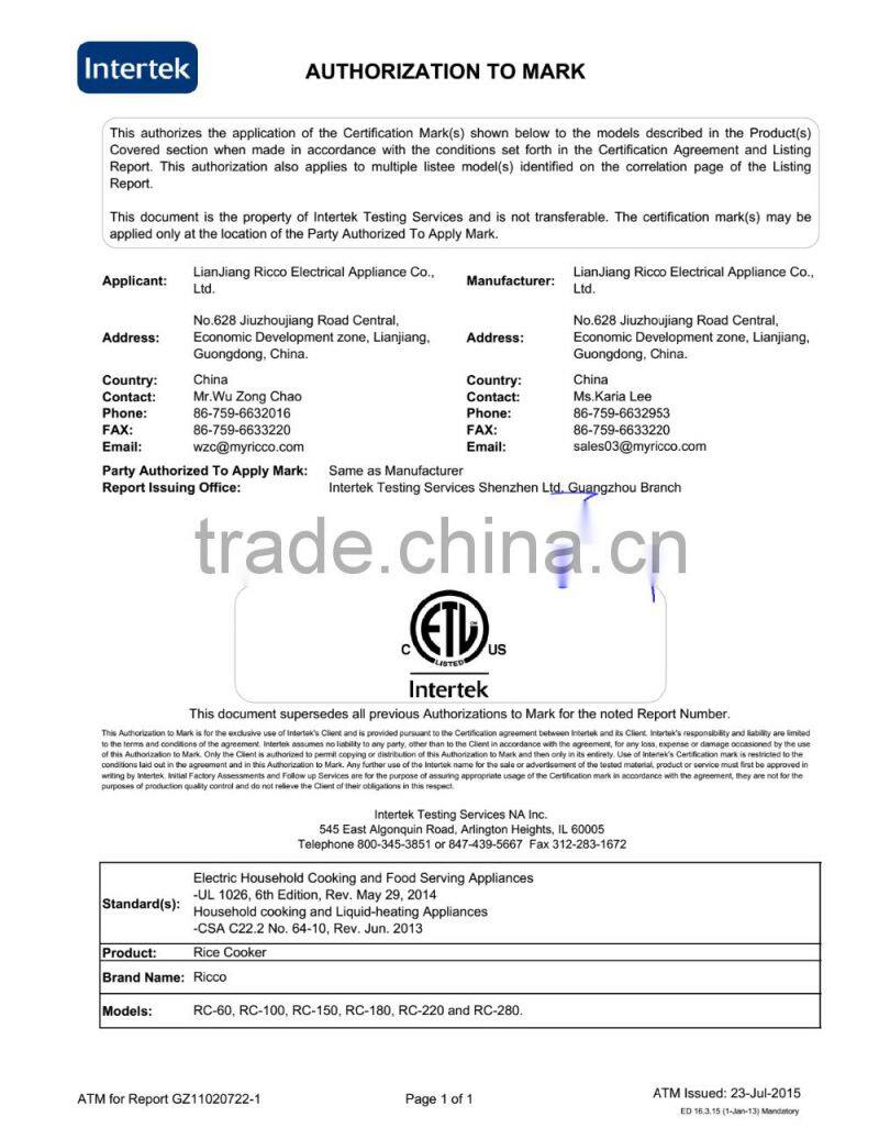 LIANJIANG RICCO ELECTRICAL APPLIANCE CO., LTD located in Lianjiang, Guangdong, China was founded in 2009.