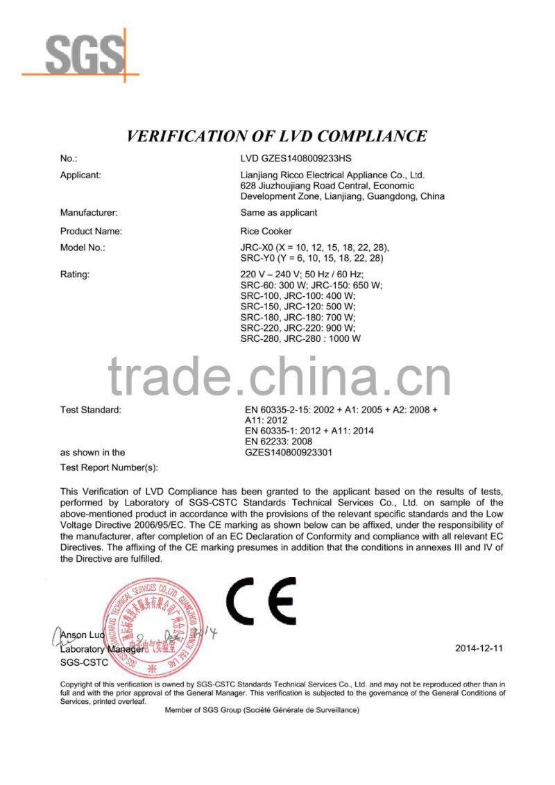 Fashionable and Durable Electric 2.2L Rice Cooker With CB