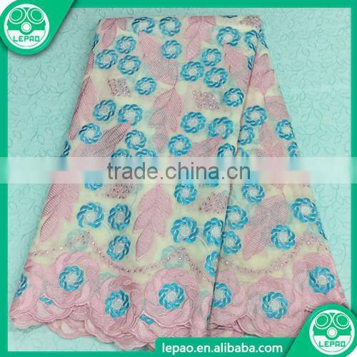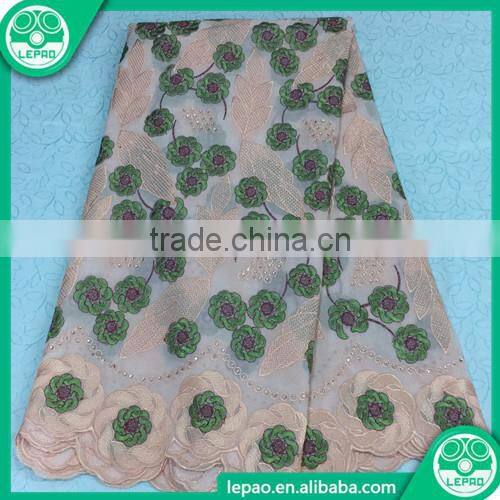 2016 New Arrival Net Embroidery Fabric Design Africa Guipure Lace Fabric With Beads