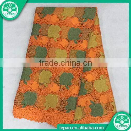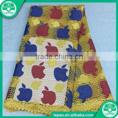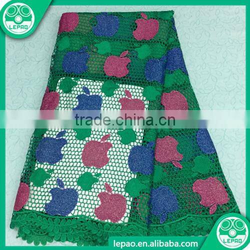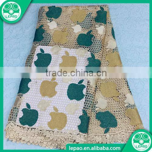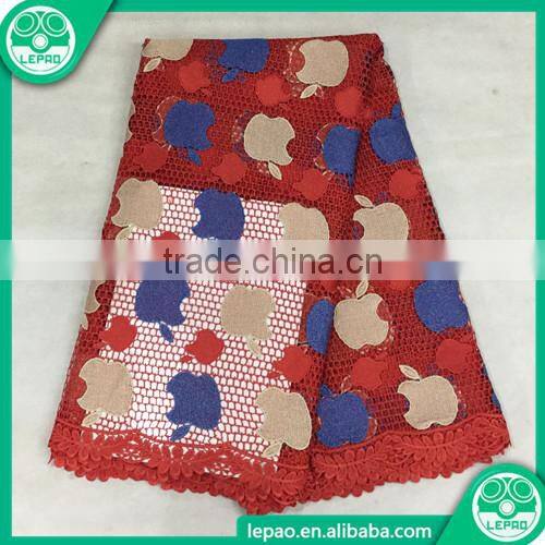 2016 African High Quality Embroidery Water Soluble 100 Polyester Lace Fabric With Apple