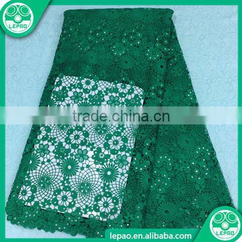 100% Polyester Teal Nigerian Cord Lace Wholesale Stock Fabric, Embroidered High Quality Cupion Lace Fabric for Women