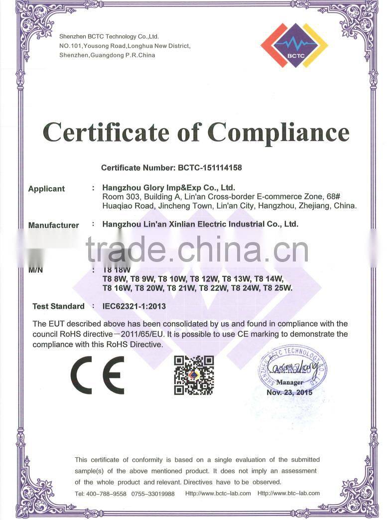4ft T8 LED Tube 1200m Glass+PC 18W With CE ROHS Certificates Daylight T8 LED Fluorescent Lamp 330Degree Beam Angle