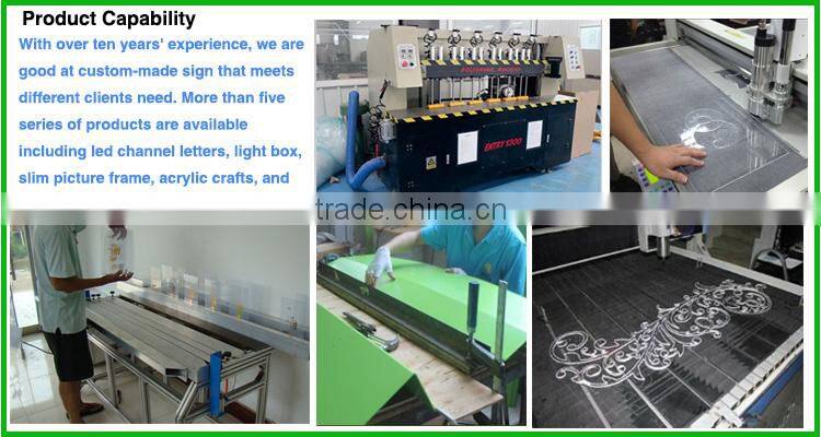 2.We are a factory manufacturing led channel letters, light box, slim picture frame, acrylic crafts, and display/road/ guide signs etc.