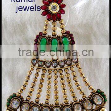 This is Next to Real Head jewelry. This have a base of silver&alloy with gold plating studded with uncut polki,ruby,emerald stones and pearls with proper fitting. this is party wear jewelry and very graceful in wearing. this will surely add five star in your looks. so order it nowwwwwwwwwwwww