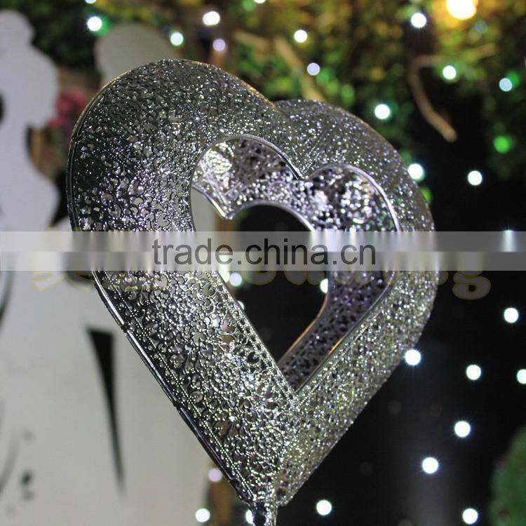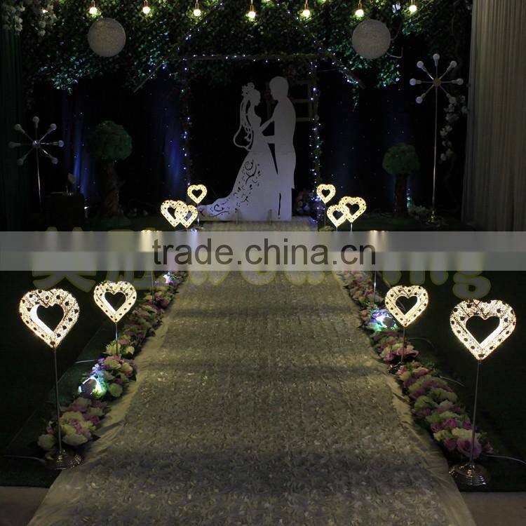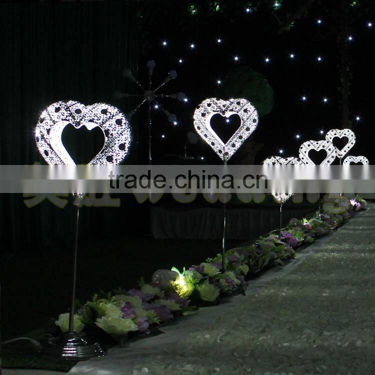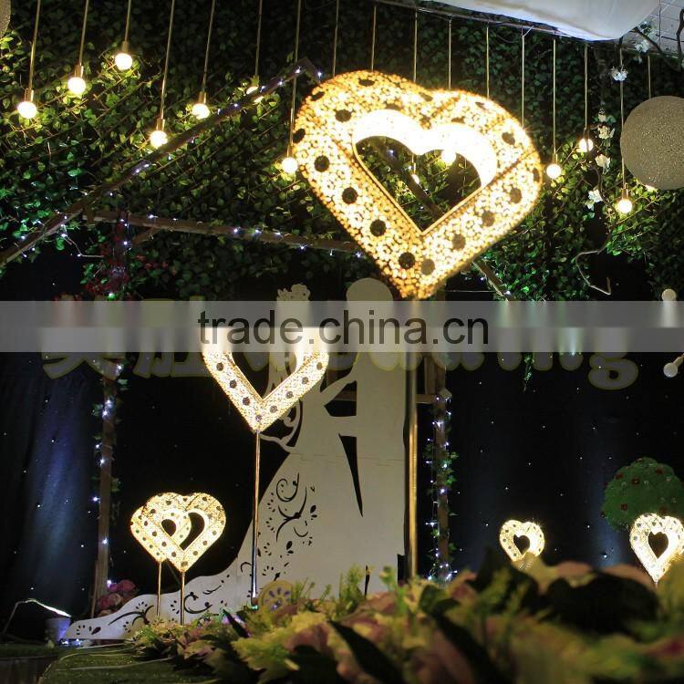Chrome finishing heart shape wedding lighting decoration.Noble decorative design and reflection of LED light. Can be placed on the side of main stage for decoration. Easy strip light replacement, and option of color from Gold or white. Battery supporting 12 hours constantly working time.