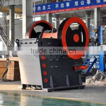 This series of jaw crusher is driving extrusion type, motor drives belt and belt roller, then jaw moves up and down movement through the eccentric shaft. When the movable jaw plate promotes the movable jaw movement to fixed jaw plate, the material is crushed or split pieces. When movable jaw and movable jaw plate draws back in the effect of eccentric shaft and springs. Then the previously crushed or split pieces of material will discharge from the lower jaw port. With the continuous rotation of the motor, the movable jaw can crush and discharge materials periodically to realize mass production.