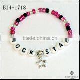 Vintage Style Rock Star Charm Neon Color Beads Rainbows Bracelet PERSONALIZED Name or Word Peace Sign Charm Bracelet Jewelry