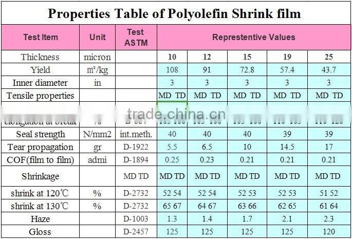 | Properties Table OF Pof Shrink Film: |