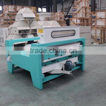 TQLM series plane revolving cleaning sieve is used for cleaning big, small and light impurity in the grain material.According to the requirement of material to be separated, this sieve can adjust its rotary speed and resultant of eccentric weight block in order to change its amplitude of vibration. So the best cleaning effect can be got. When the sieve ship is moving, three moving tracks can be formed at the same time, the forepart is oval, middle part, circle; end, like straight line reciprocation. This motion form can remove impurity quickly. The separating cover of air suction moved along with the sieve ship can separate light impurity in material. The material fed box can stabilize the flow rate of material fed into the machine and make the material in the sieve surface distribute uniformly.