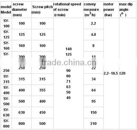 LS series Screw Conveyors made ISO9001 standard, design and manufacture accord with ZBJ81005.1 ~ 2-88 LS screw conveyor professional standards. Type LS screw conveyor diameter from 100 mm to 1250 mm, a total of 12 kinds of specifications, can be divided into single and double drive two forms, single drive screw machine maximum length can reach 40 m (oversize 30 m), double drive screw machine with middle shaft structure, the maximum length of 80 m (oversize 60 m), every 0.5 m a spiral captain degrees, can be selected according to need, bearing, the tail bearing under the external screw head department to reduce the dust of the invasion of the bearing chamber improves the service life of screw machine key-module. Suspension bearing adopts rolling, sliding interchangeable among two kinds of structure,small resistance, sealing strong, good wear resistance. Sliding bearing shell powder metallurgy, nylon and babbitt and so on the many kinds of material selection for user according to different occasions. Lateral suspension bearing machine type oil cup, to facilitate centralized lubrication. Front-rear mouth position arranged flexibly, and adding type electric discharging mouth, convenient automatic control, can also according to user requirements, speed alarm device.