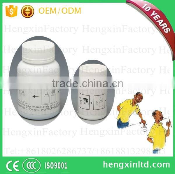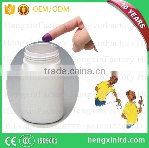 *Indelible ink is also called silver nitrate ink, since it can't be washed by water, it mostly to be used for voting and election, the content of the silver nitrate could be5%, 10%, 15%, 25%...It can be according to your require, and the more content of silver nitrate contain, the better effect it will be. Election stain typically stays on skin for 72–96 hours, lasting 2 to 4 weeks on the fingernail and cuticle area. The election ink used in India puts a permanent mark on the cuticle area which disappears only with the growth of new nail.
