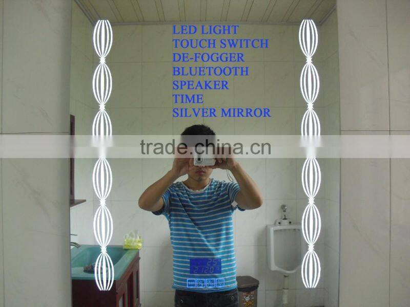 2016 Carton Fair Displayed New Designs Touch Switch Led Bathroom Defogger Mirror With Bluetooth / Speaker / Time Functions