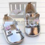 Wholesale Fashion Kids Child Shoes Cat Embroidery Golden Pu Baby Shoe