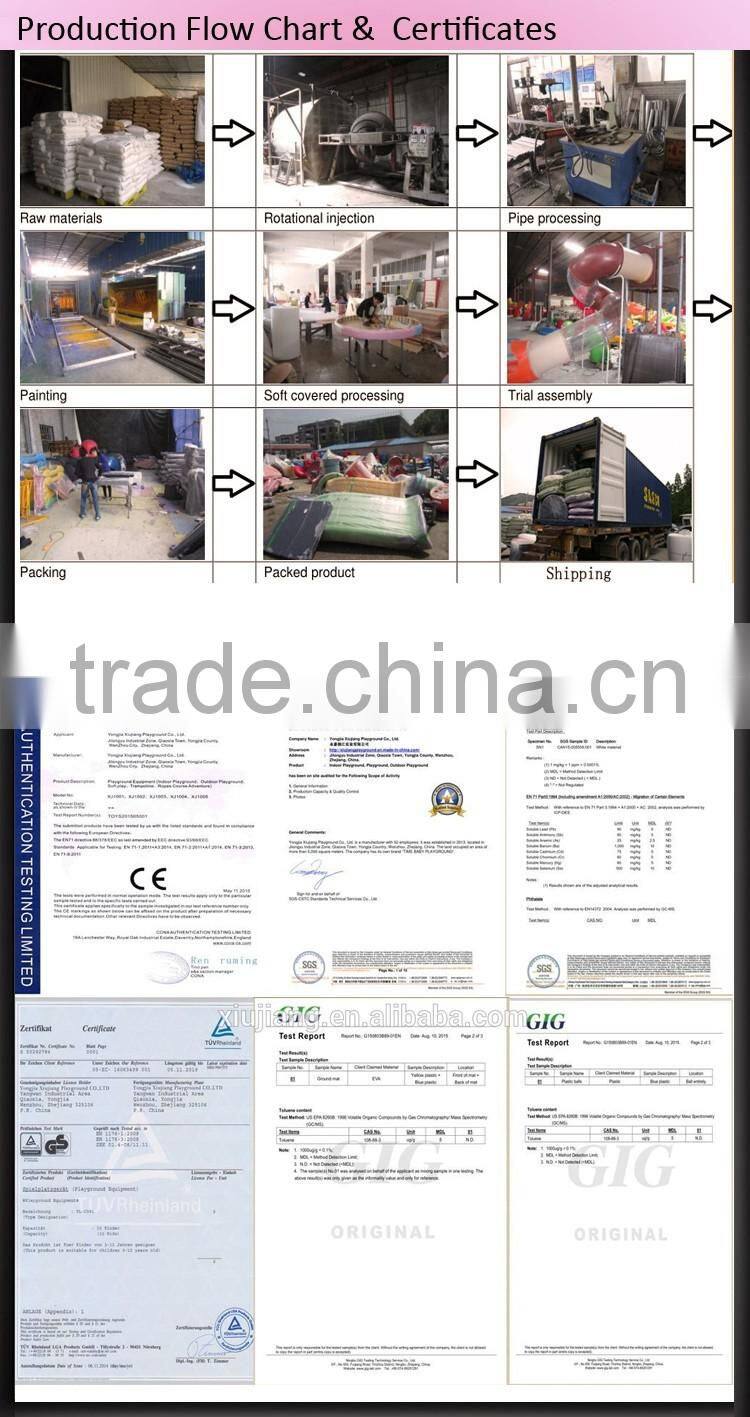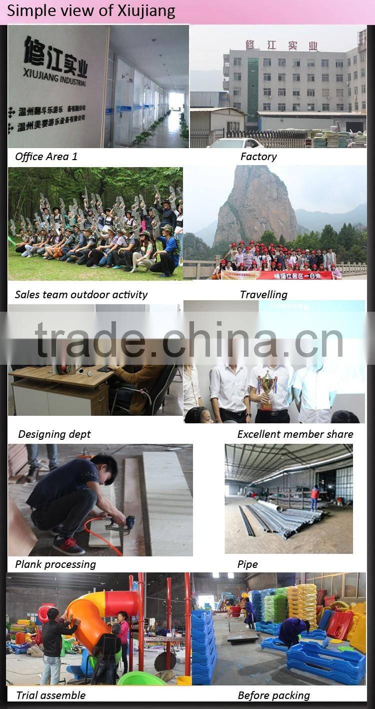 It is our great pleasure recommending you Yongjia Xiujiang Playground Co., Ltd. Xiujiang have been the leading on designing, manufacturing and installing children's entertainment equipments in China for nearly 10 years. We are the market leader of Indoor playground, Outdoor playground equipments, Ropes climbing playground, Trampoline Park, Inflatable castle, Climbing walls, Swings, Seesaw ect. We believe that designing a high return play system for your family and entertainment center depends oment center and we are looking forward to sharing our experience with you. Our professional and knowledgeable team will work hand in hand with your team to develop a proposal that meets the needs and budget of your project.You are welcomed to tell us the size of playgrounds, and what style/them playground you prefer. best design draft will be provided for you!