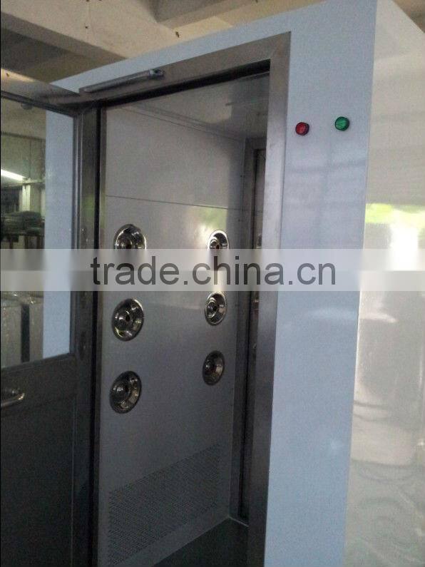 The air shower time is adjustable from 1-99 seconds, compact and sound in structure. An air shower passage can be made up of several air showers.