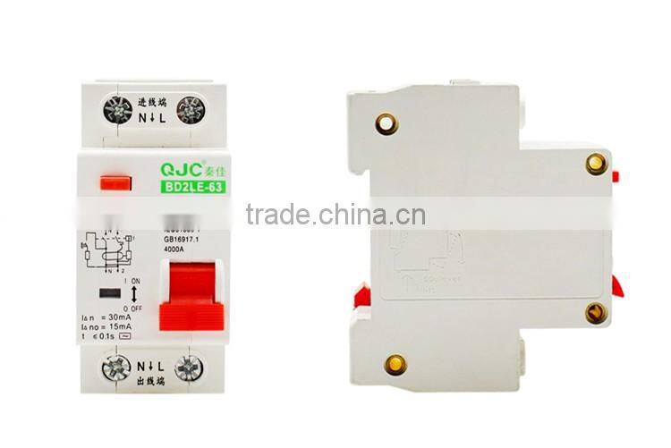 BD2LE-63(Q2 series) Residual current circuit breaker is used in AC50 / 60HZ two poles 230V, four poles 400V,rated current up to 63A, It can automatically and immediately cut off power supply once someone suffers from electric shock or leakage current above specified value. It can effectively protect personal security and avoid the damage to equipment. The residual current operated circuit breaker can also function as overload and short-circuit protection and unfrequent changeover of line under normal condition.