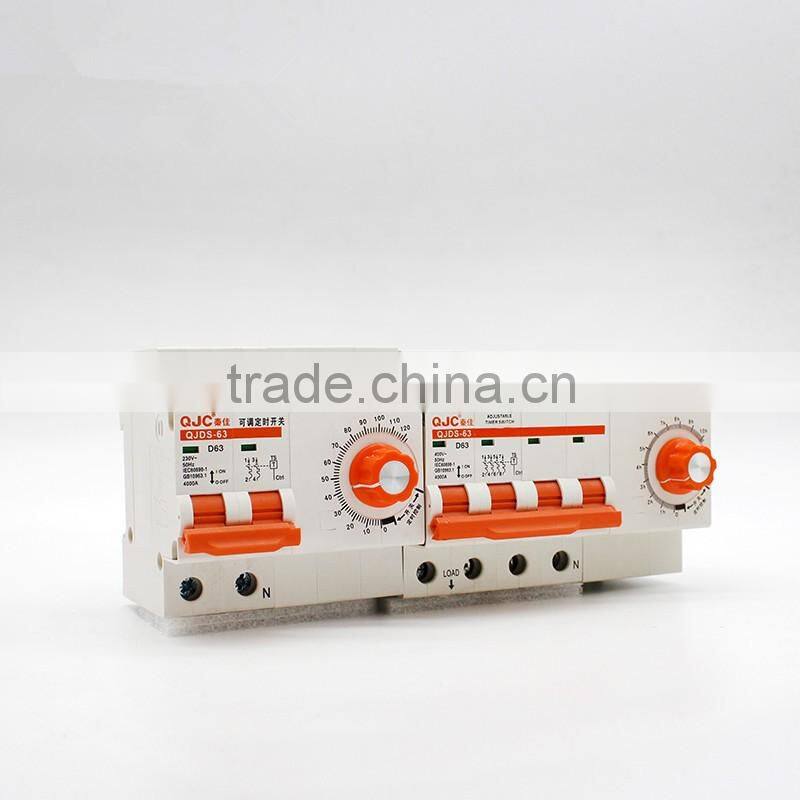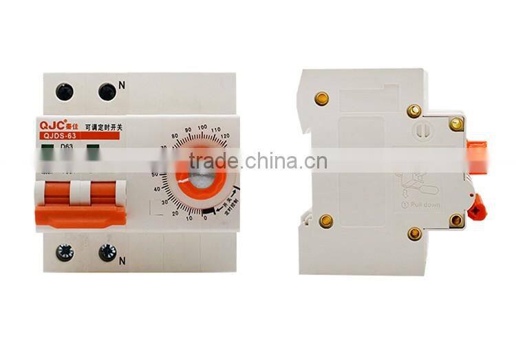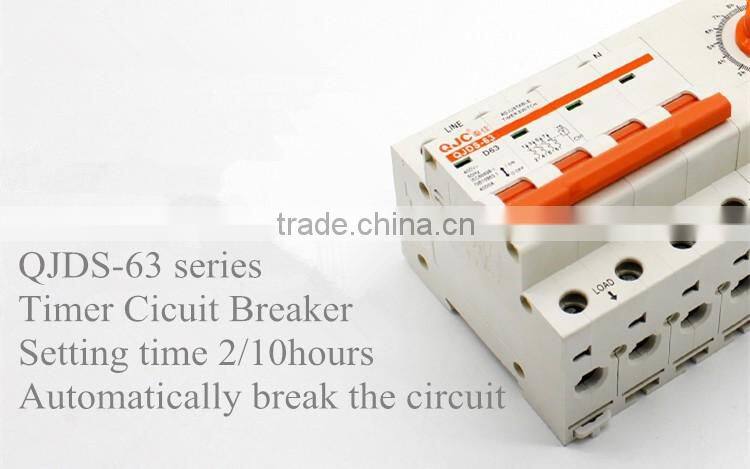 QJDS-63 series adjustable timer circuit breaker switch is applicable to circuit with AC 50/60hz, 2pole 230V,3/4p 400v,rated current 16A-125A.Normally used in the equipment that needed timing control,like the water suction pump ,generator,etc. It can set time from 2-10hours,after it works reach the pre-set time,the circuit breaker will shut off the power automatically, no personnel operating.