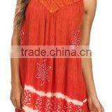 Sequin Embroidered Batik Relaxed Fit Sleeveless V-Neck Top - Burnt Orange - OS