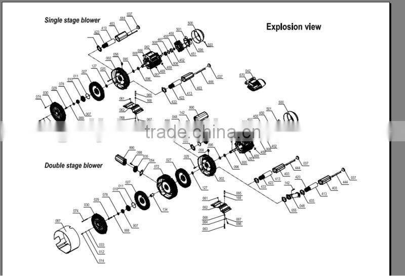 3)Structure:There is no driving link on blower except blade, and the blade connected motor directly, no gear and driving belt, All of these keep the blower smooth running, long term performance and high pressure.