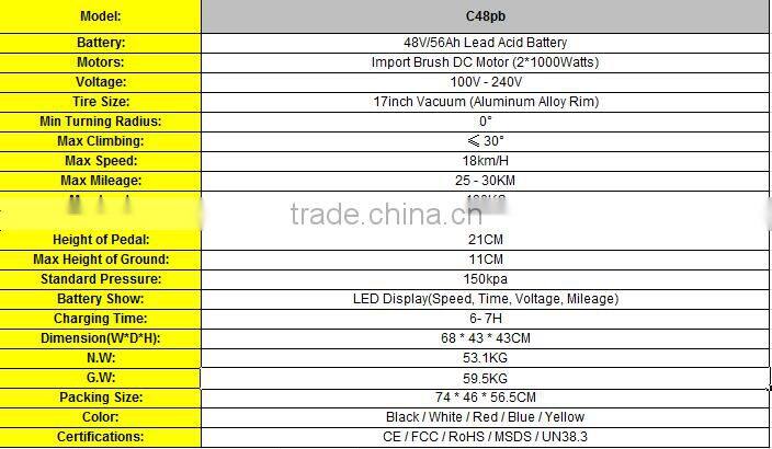 Safety Best Quality Chinese Electric Chariot Balance Scooter 1000w*2