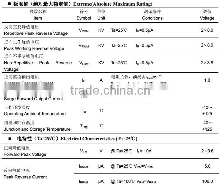 | Max. Reverse Voltage | 16KV | Max. Forward Current | 1.0A | |