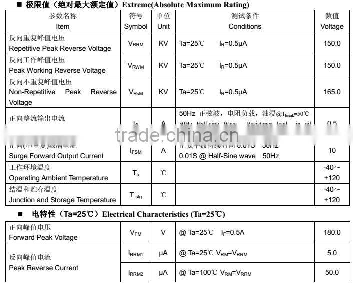 Competitive price and best price for 150KV/0.5A High Voltage Silicon Stack :