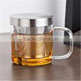 FDA Certification Standard 410ml/550ml Borosilicate Glass Tea Pot With Tea Strainer.