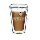 FDA Certificated & Hand-made 350ml Borosilicate Double Wall Glass Beer Cup