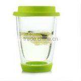 Double Wall Glass Coffee Cup With Silicone Sleeve Without Cap.360ML