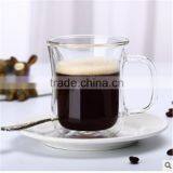 FDA Standard, Borosilicate Material Cups & Saucers Drinkware Type Double Wall Glass Coffee Cup Set With Creative Handle