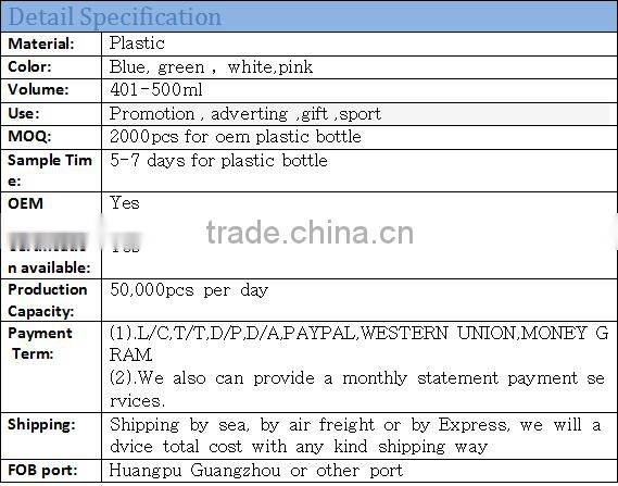 New Hot Fashional BPA-free Tritan 500ml Plastic Water Bottle Sports Water Bottle
