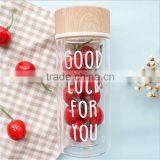 Manufacturer Selling High Quality Portable Double Wall Drinking Sport Glass Water Bottle With Bamboo Lid