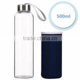 Top Level Quality Stylish Environmental Borosilicate Glass Water Bottle With Colorful Sleeve 280ml/360ml/550ml
